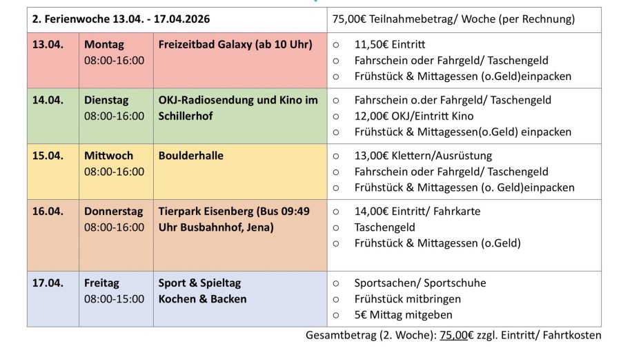 Liebe Eltern, ab sofort können sie die Osterferien buchen!